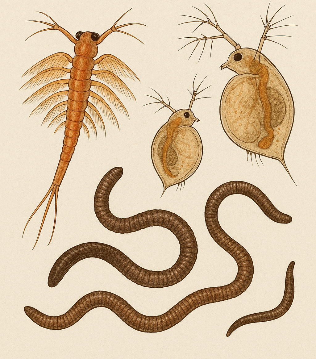 Live food cultures like brine shrimp, daphnia, and grindle worms provide aquarium fish with fresh, nutrient-rich meals that boost color, growth, and breeding. Easy to raise at home, these natural foods promote health and mimic the diet fish would find in the wild.