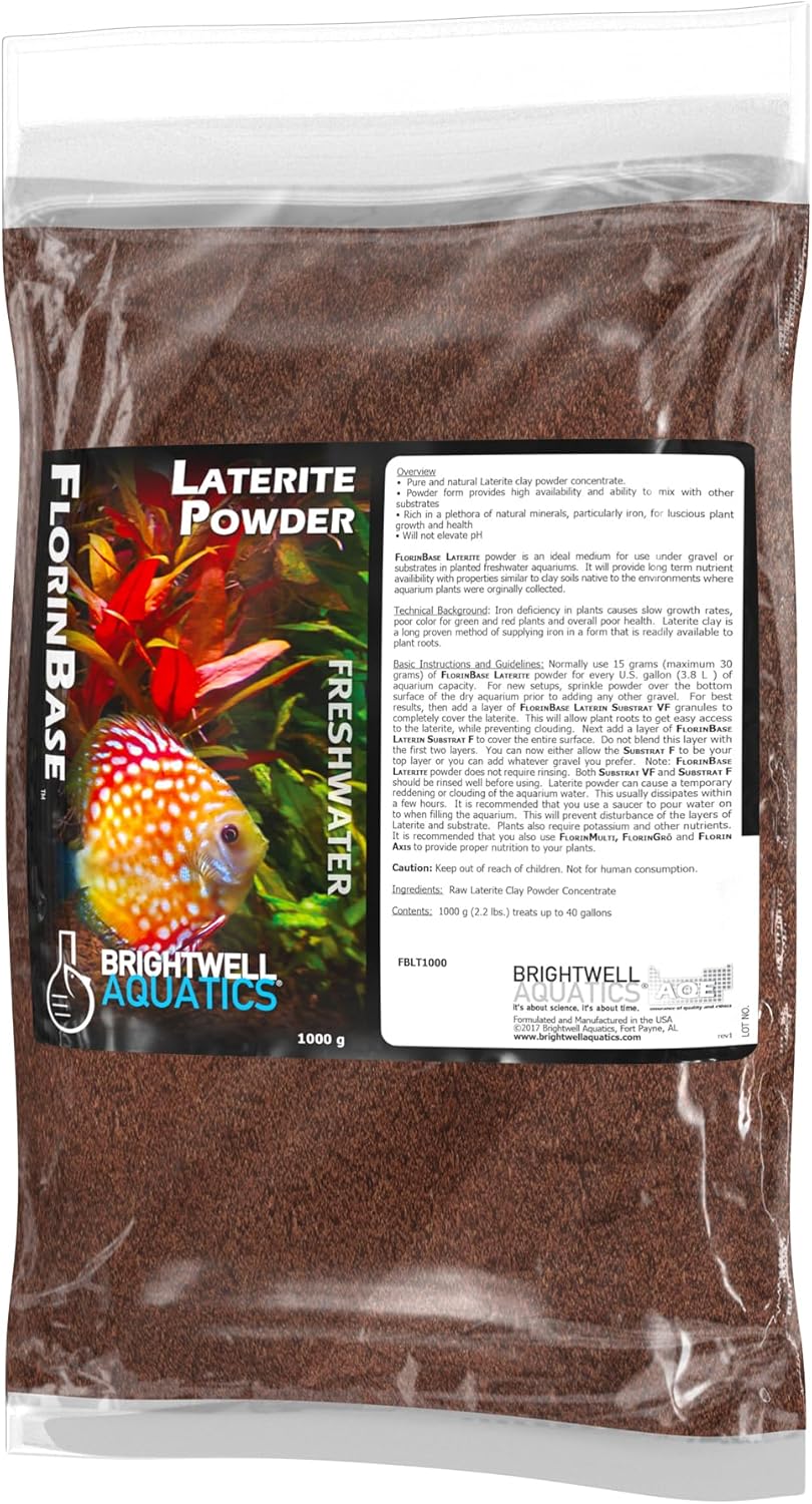 I highly recommend using Brightwell Aquatics FlorinBase Laterite Powder in conjunction with a nice layer of Seachem Flourite Dark substrate placed directly over it. This combination creates an excellent foundation for planted aquariums by pairing an iron rich base with a stable, long lasting top substrate that plants thrive in.